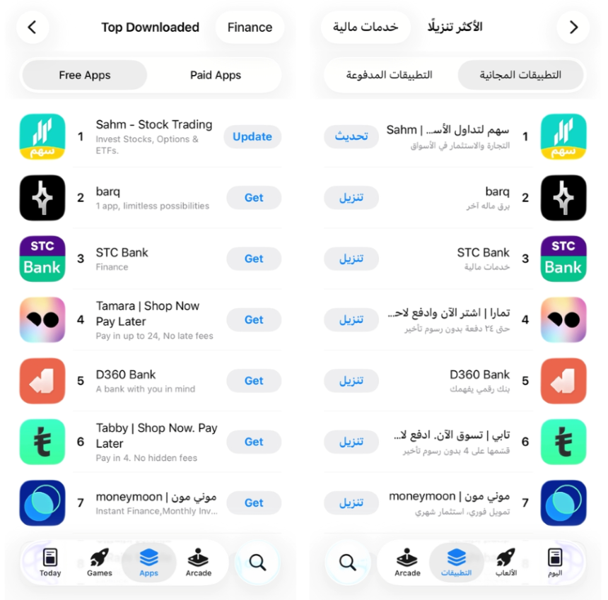 تطبيق سهم يتصدر المرتبة الأولى في فئة القطاع المالي على متجر التطبيقات السعودي مع ارتفاع ملحوظ في عدد المستخدمين