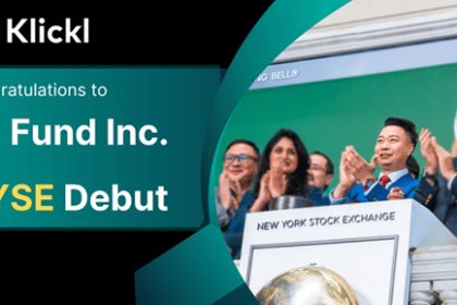 الرئيس التنفيذي لشركة Klickl، مايكل تشاو، يقرع جرس الافتتاح في بورصة نيويورك بمناسبة إدراج صندوق C1