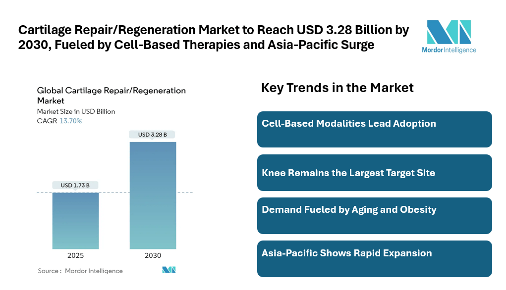 Cartilage Repair/Regeneration Market to Reach USD 3.28 Billion by 2030, Fueled by Cell-Based Therapies and Asia‑Pacific Surge
