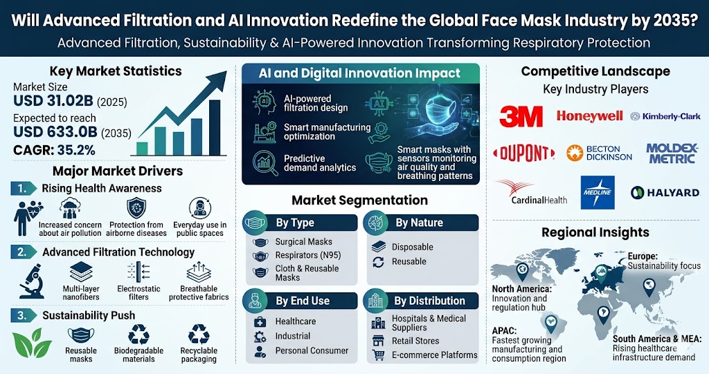 Face Mask Market Set to Soar with 35.2% CAGR by 2035 Driven by Technological Innovations and Consumer Awareness